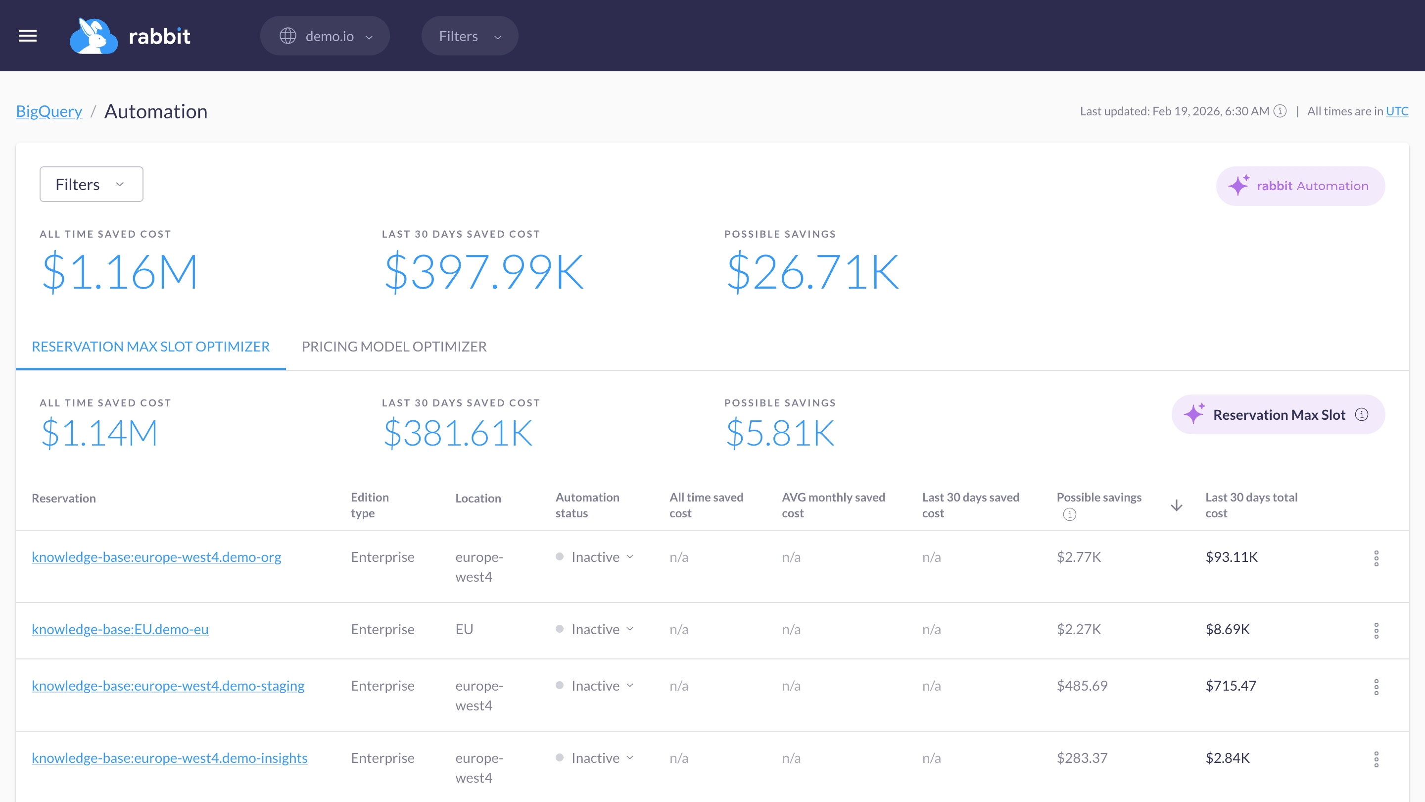 No more manual tuning. Rabbit identifies waste and optimizes reservations and slot usage in real-time, automatically cutting costs.